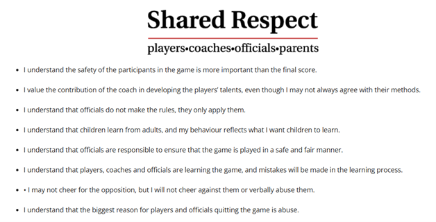 - Educate yourself by completing the Respect in Sport Parent/Guardian Course, whether it is mandatory or not.