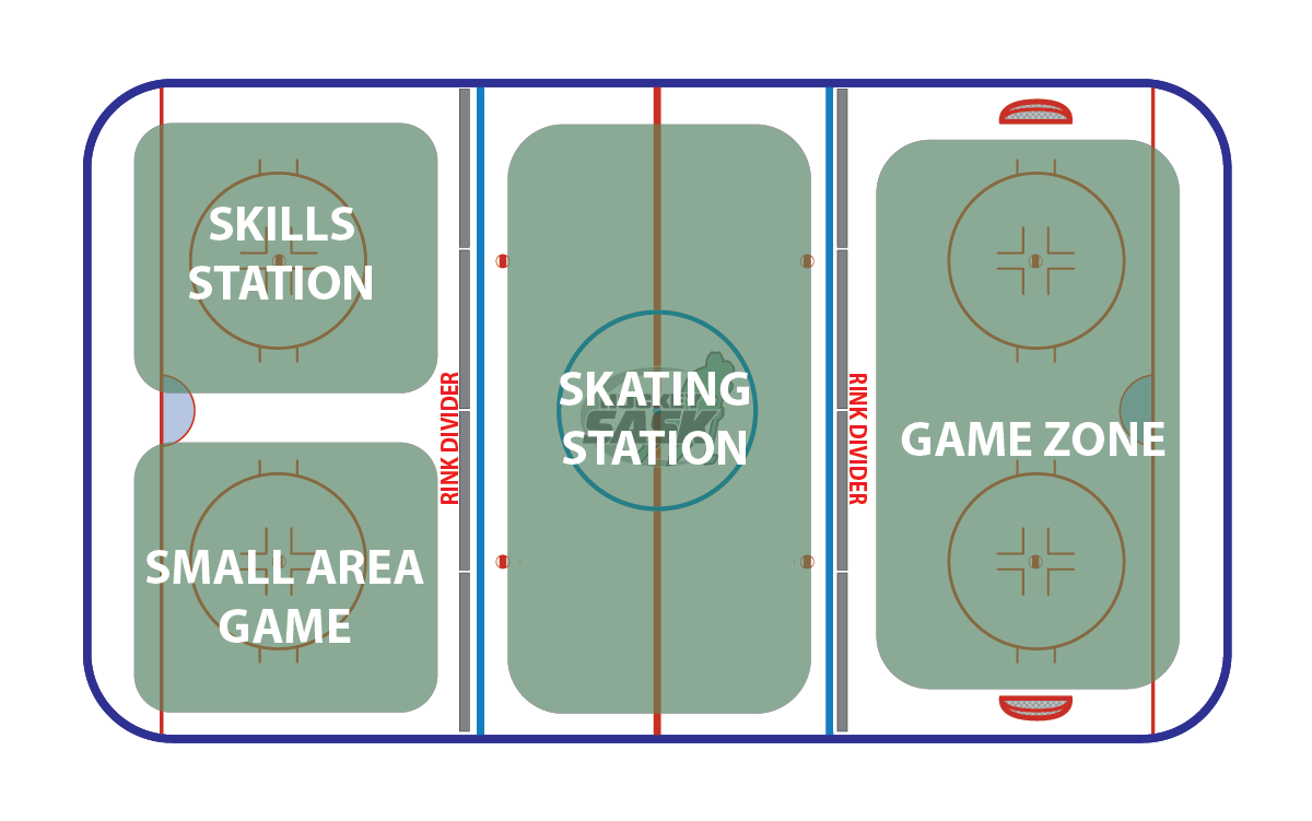 Hockey Saskatchewan is NOT making Cross-Ice dividers mandatory for associations to purchase, but they can be very useful and come in many different forms. They are used to help stop pucks from crossing into different “zones”. They also form a barrier that defines where kids should be concentrating their efforts.
